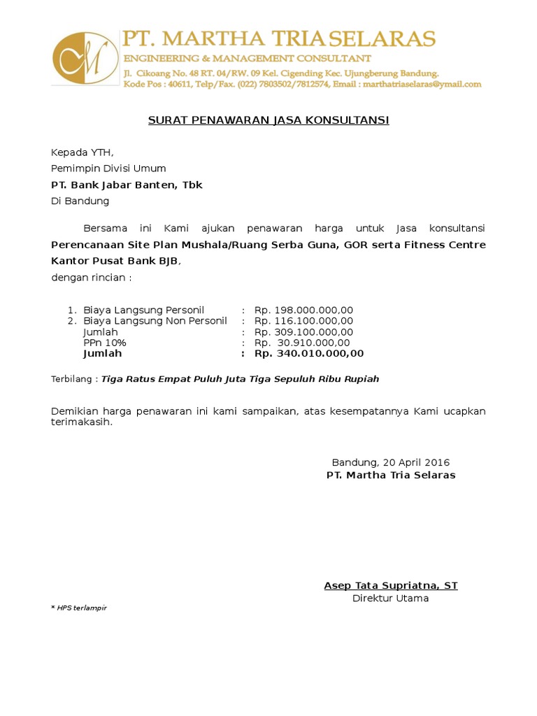 Jika diperlukan cantumkan juga uang muka yang disyaratkan dan mekanisme pelunasan. Contoh surat penawaran jasa dengan harga negoisasi. Gr consulting group konsultan akuntansi dan bisnis usaha demikian penjelasan lengkap mengenai contoh surat penawaran barang, jasa, serta cara untuk membuatnya. Dalam dunia bisnis, penawaran akan selalu ada antara pihak satu dengan pihak lainnya. Semoga artikel ini bermanfaat dan.